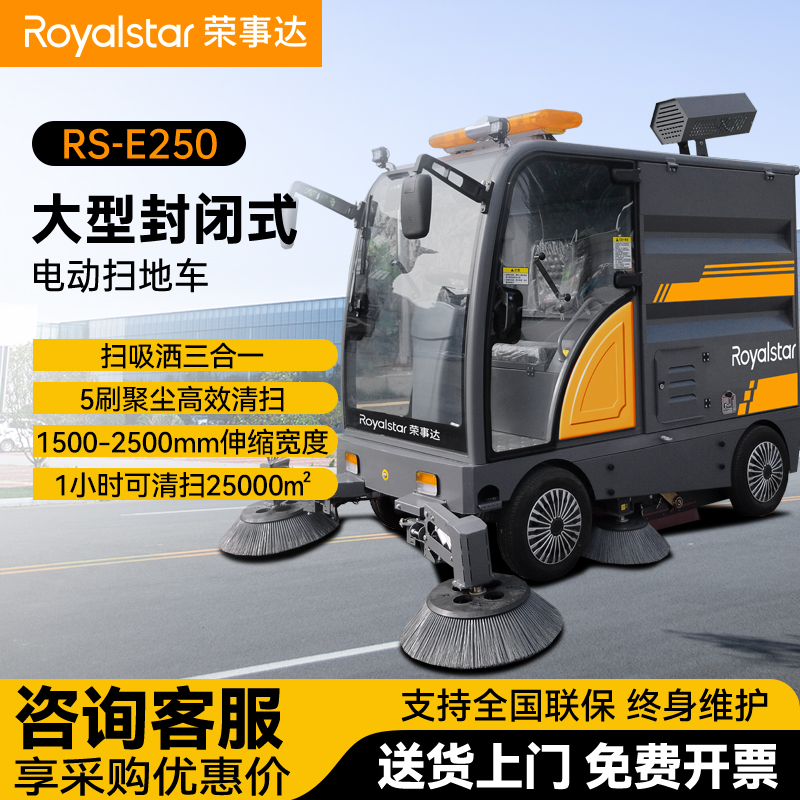 四輪清掃車240L掛桶清潔,1小時高效清掃25000㎡,磚頭可清掃,強勁4邊刷+4主刷系統,8700W大功率動力,掃...